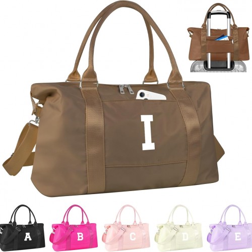 Birthday Graduation Gifts for Daughter,Initial Travel Duffel Bag Sports Gym Bag for Girls Teen Kids Birthday Gifts,Personalized Weekender Bag Carry On Tote Bags Cute Overnight Bag for Women(Brown, I)