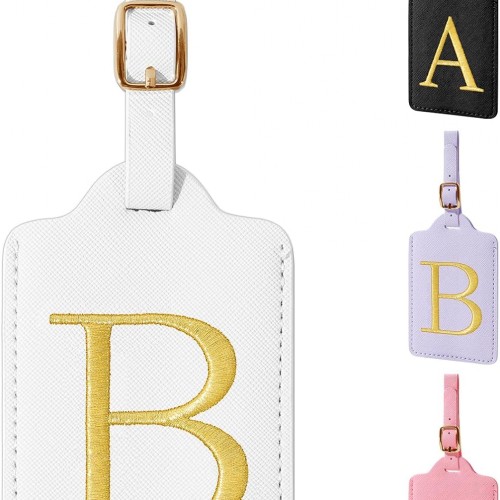 Personalized Initial Luggage Tags for Suitcase TSA Approved, White Leather Cute Luggage Tag with Privacy Cover Name Card, Embroidered Custom Luggage Tags Travel Baggage Tags Gifts for Women Kids(B)