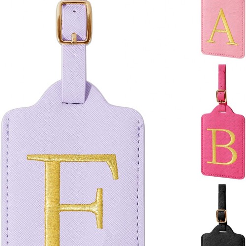Personalized Initial Luggage Tags for Suitcase, Purple Leather Cute Luggage Tags with Privacy Cover Name Card, Embroidered Custom Monogrammed Luggage Tag Travel Backpack Tags Gifts for Women Kids(F)