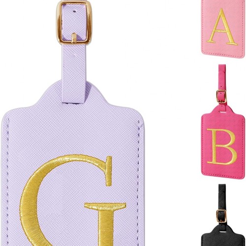 Personalized Initial Luggage Tags for Suitcase, Purple Leather Cute Luggage Tags with Privacy Cover Name Card, Embroidered Custom Monogrammed Luggage Tag Travel Backpack Tags Gifts for Women Kids(G)