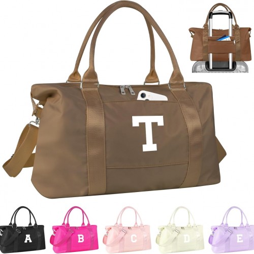 Birthday Graduation Gifts for Daughter,Initial Travel Duffel Bag Sports Gym Bag for Girls Teen Kids Birthday Gifts,Personalized Weekender Bag Carry On Tote Bags Cute Overnight Bag for Women(Brown, T)