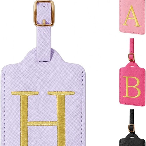 Personalized Initial Luggage Tags for Suitcase, Purple Leather Cute Luggage Tags with Privacy Cover Name Card, Embroidered Custom Monogrammed Luggage Tag Travel Backpack Tags Gifts for Women Kids(K)