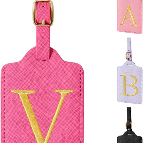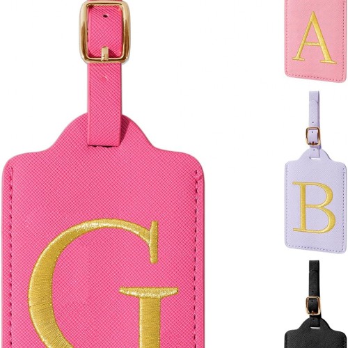 Personalized Rose Red Leather Initial Luggage Tags with Privacy Cover Name Card, Custom Monogram Embroidered Cute Suitcase Tags for Women Kids