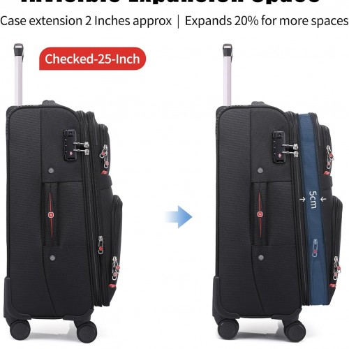 Softside Expandable Luggage with 4 Spinner Wheels, Durable Checked-Luggage Suicase (Black, 25-Inch)