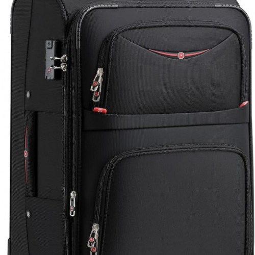 Softside Expandable Luggage with 4 Spinner Wheels, Durable Checked-Luggage Suicase (Black, 29-Inch)