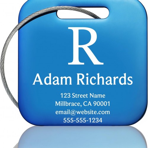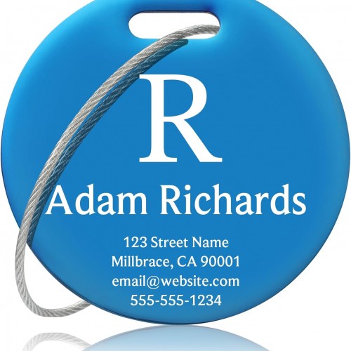 Customized Stainless Steel Luggage Tags: Personalize Your Suitcases, Backpacks, and Bags with Your Text (Blue)