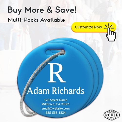 Customized Stainless Steel Luggage Tags: Personalize Your Suitcases, Backpacks, and Bags with Your Text (Blue)