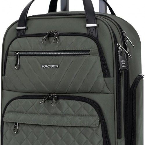 KROSER Carry On Underseat Multi-functional, 16-inch Underseater Lightweight Overnight Suitcase for Women, Army Green