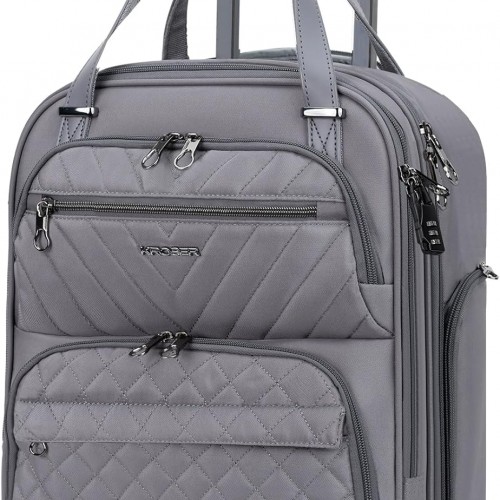 KROSER Carry On Underseat Multi-functional, 16-inch Underseater Lightweight Overnight Suitcase for Men Women, Grey