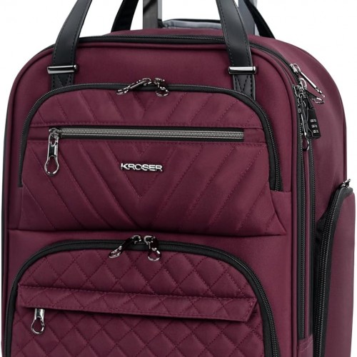 KROSER Carry On Underseat Multi-functional, 16-inch Underseater Lightweight Overnight Suitcase for Women, Burgundy