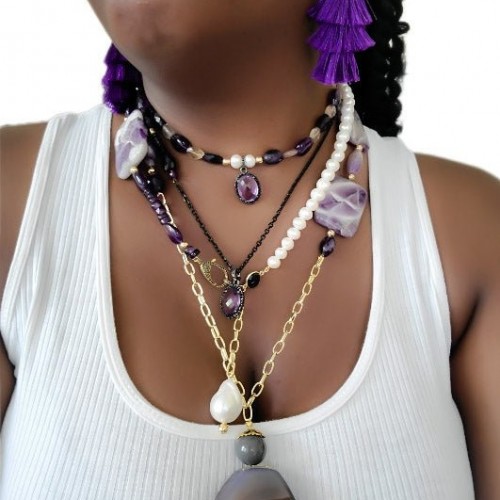 Amethyst and Black Spinel Necklace