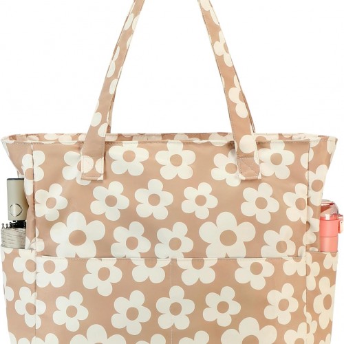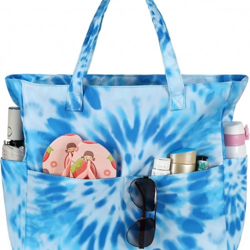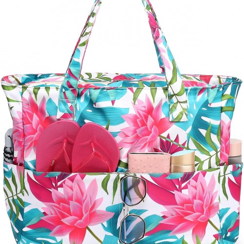 LEDAOU Large Beach Tote Bag Women Waterproof Sandproof Zipper Beach Tote Bag for Pool Gym Grocery Travel with Wet Pocket