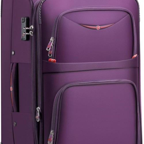 Softside Expandable Luggage with 4 Spinner Wheels, Durable Checked-Luggage Suicase (Purple, 29-Inch)
