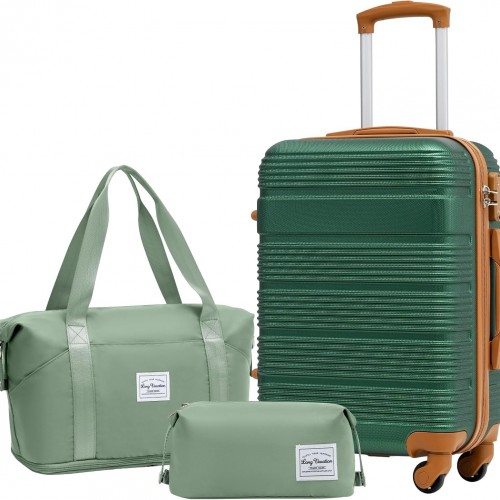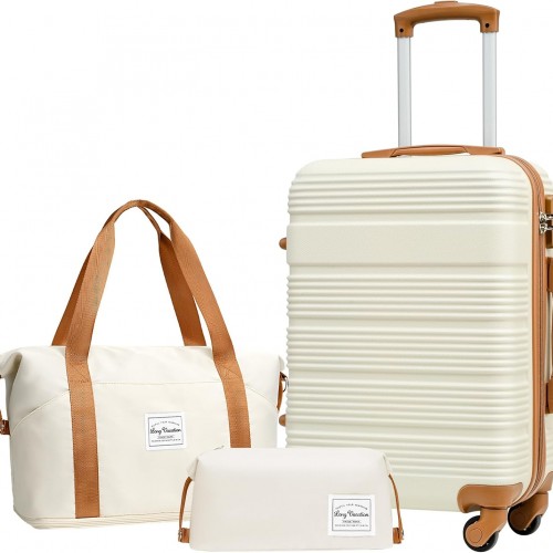 LONG VACATION 3 Piece Carry On Luggage 20 Inch Suitcase with Spinner Wheels, ABS+PC Hardshell Suitcase set with TSA Lock & YKK Zipper