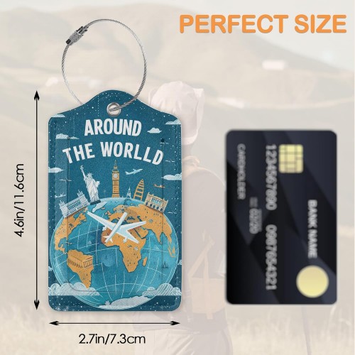Around The World Travel Art 3 PCS Luggage Tags, Flight Map Leather Suitcase Tags with Privacy Cover Name Address Labels and Durable Steel Loop for Men/Women Travel Bag Suitcases