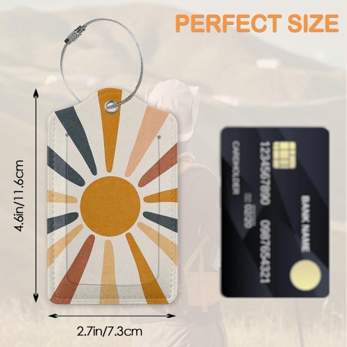 Boho Color Sunburst PU Leather Luggage Tags for Suitcase, Abstract Desert Travel Cruise 3 Pack with Privacy Flap, Name ID Label and Metal Loop for Women Men Girls Baggage Bag Backpack