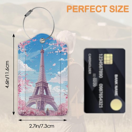 Eiffel Tower Sakura 3 Pack Luggage Tags for Suitcases, Take Me to Paris PU Leather Luggage Tag for Travel, Bag Tags with Privacy Name ID Card and Steel Loop for Women Men