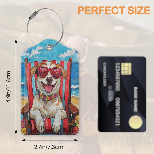 Funny Dog Summer 3 Pack PU Leahter Luggage Tag with Stainless Steel Loop, Cool Dog at The Beach Travel Suitcase Labels with Privacy Cover ID Label Quickly Spot for Bags