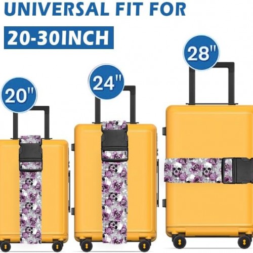 Luggage Straps for Suitcases Travel Belt Accessories, Cute Suitcase Strap, Adjustable Luggage Belt Strap, Heavy Duty with Quick-Release Buckle Luggage Strap Skull Flowers