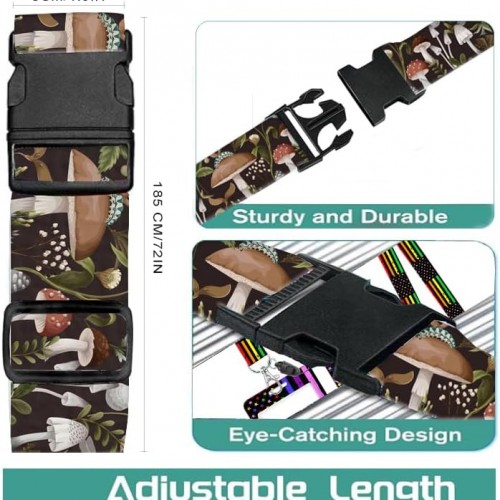 Luggage Straps for Suitcases Travel Belt Accessories, Cute Suitcase Strap, Adjustable Luggage Belt Strap, Heavy Duty with Quick-Release Buckle Luggage Strap Boho Mushrooms