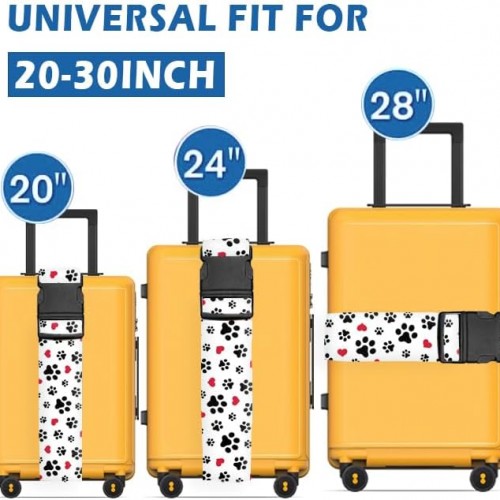 Luggage Straps for Suitcases Travel Belt Accessories, Cute Suitcase Strap, Adjustable Luggage Belt Strap, Heavy Duty with Quick-Release Buckle Luggage Strap Cute Dog Paws