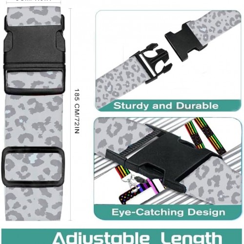 Luggage Straps for Suitcases Travel Belt Accessories, Cute Suitcase Strap, Adjustable Luggage Belt Strap, Heavy Duty with Quick-Release Buckle Luggage Strap Grey Leopard