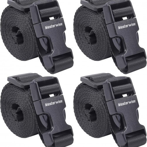 Buckle Straps with Clips, Adjustable Nylon Straps with Buckle, Packing Strap, Black 4 Pack (6’x1)