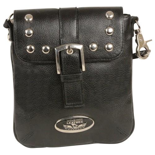 Milwaukee Leather MP8805 Women’s Black Small Leather Studded Shoulder Bag One Size