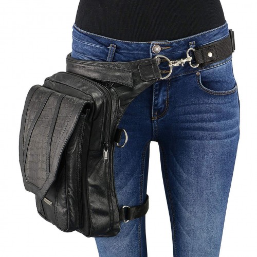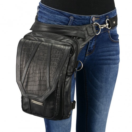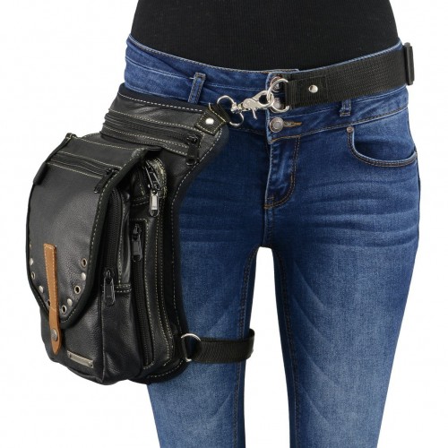Milwaukee Leather MP8899 Black Conceal and Carry Leather Thigh Bag with Waist Belt One Size
