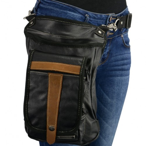 Milwaukee Leather MP8897 Black and Tan Conceal and Carry Leather Thigh Bag with Waist Belt One Size