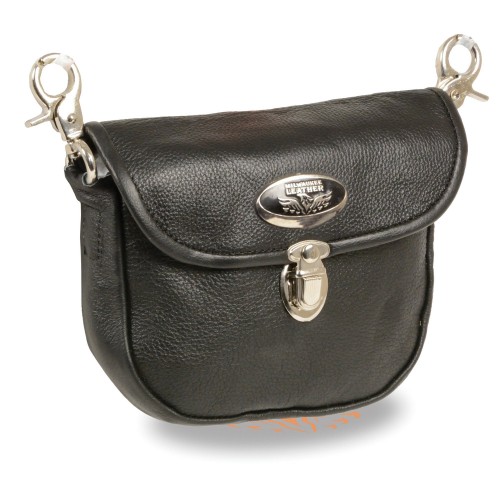 Milwaukee Leather SH520 Women’s Black Leather Belt Bag with Flap and Belt Clasps One Size