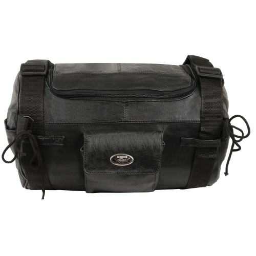 Milwaukee Leather SH535 Small Motorcycle Leather Roll Bag Mounts to Sissy Bar Easily One Size Black