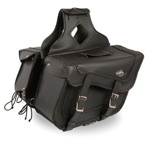 Milwaukee Leather SH664ZB Large Braided Zip Off PVC Throw Over Saddle Bag One Size Black