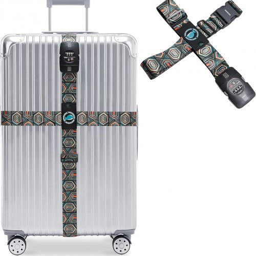 Travelkin Luggage Straps TSA Approved – Adjustable Cross Suitcase Straps with TSA Lock, Reinforced Buckle, Unique Pattern – Secure Heavy Duty Luggage Straps for Travel (Geometry)