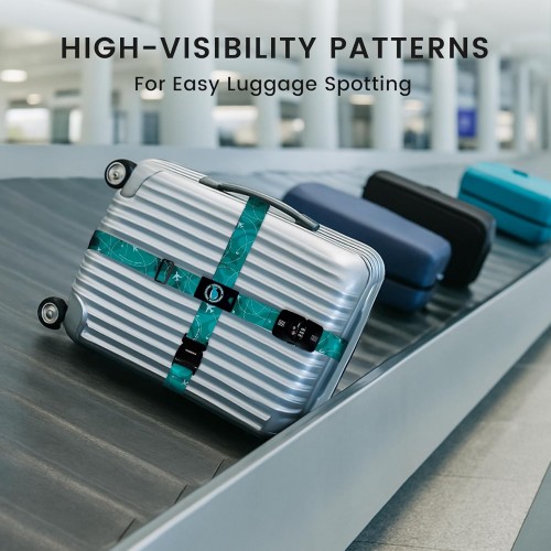 Travelkin Luggage Straps TSA Approved – Adjustable Cross Suitcase Straps with TSA Lock, Reinforced Buckle, Unique Pattern – Secure Heavy Duty Luggage Straps for Travel (Green)