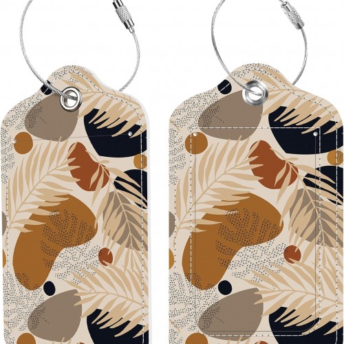 Boho Tropical Leaves Luggage Tags 2PCS PU Leather Suitcases Tag with Stainless Steel Loop and Privacy Name Address Cover Label Card for Women Men Travel