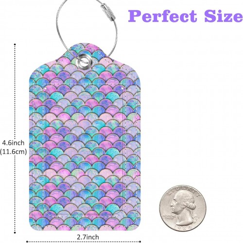 2 Pack Luggage Tags for Suitcase Watercolor Mermaid Fish Scale Wave Leather Stainless Steel Loop Label Tags for Women Men Travel Bag Suitcase with Privacy Cover Name ID Card
