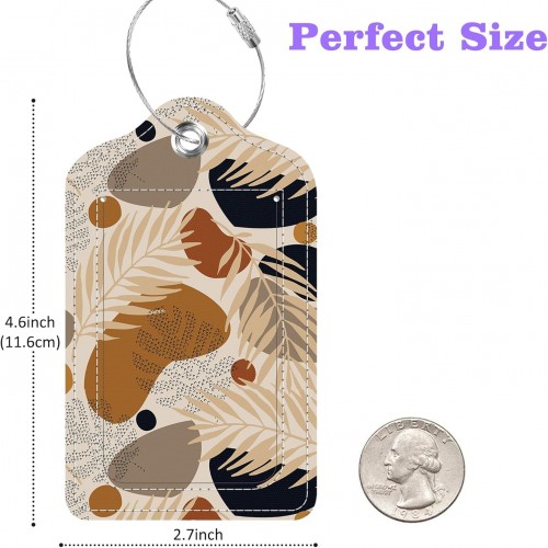 Boho Tropical Leaves Luggage Tags 2PCS PU Leather Suitcases Tag with Stainless Steel Loop and Privacy Name Address Cover Label Card for Women Men Travel