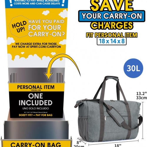 Narwey 18x14x8 Inches Travel Bag Spirit Airlines Frontier Personal Item Bag, Travel Duffel With Wet Pocket Carry on Bag for Airplane Underseat Duffle Overnight for Women and Men (Grey)