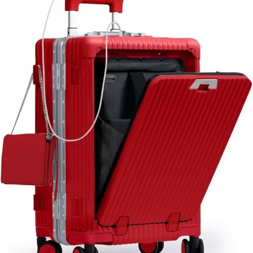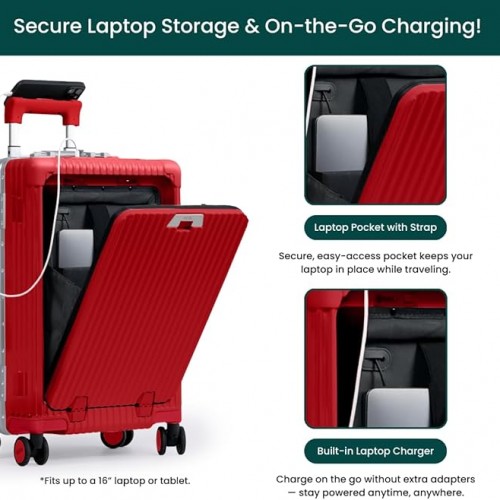 Nobl Travel Carry On Luggage, Noble Zipperless Aluminum Frame PC Hard Shell Suitcase, 22.5x15x9.5 Airline Approved, 360° Spinner Wheels, TSA Locks, USB Charging Port, Cup & Phone Holder – Red