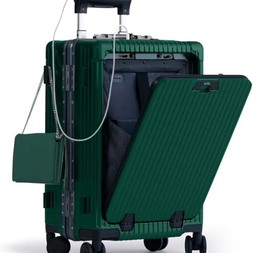Nobl Travel Carry On Luggage, Noble Zipperless Aluminum Frame PC Hard Shell Suitcase, 22.5x15x9.5 Airline Approved, 360° Spinner Wheels, TSA Locks, USB Charging Port, Cup & Phone Holder -Forest Green
