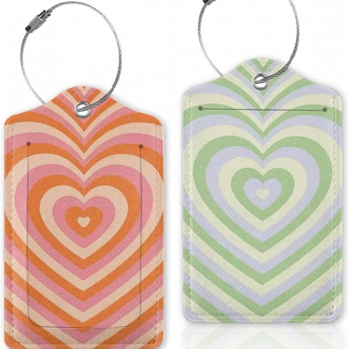Retro Heart 70s 80s Luggage Tags Bag Tag with Privacy Cover Name Id Card Stainless Steel Loop Suitcase Labels Pu Leather Baggage Tags for Travel,2 Pcs
