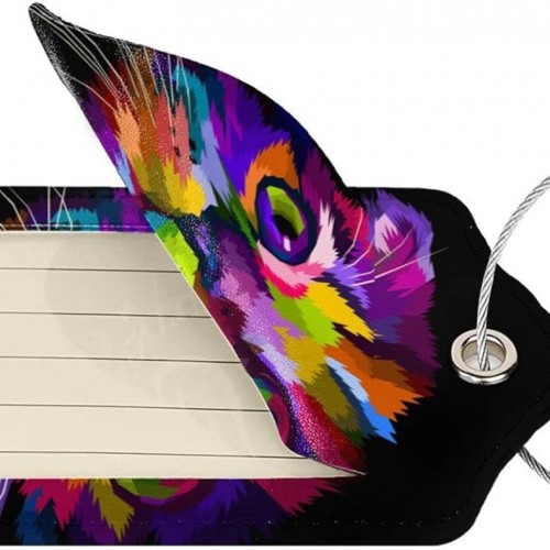 Cute Cat Leather Luggage Tags for Adults Teens, 2 Pack Colorful Art Kitten Animal Travel Bag Suitcase Labels with Stainless Steel Loop ID Tags Card Baggage Bag Label