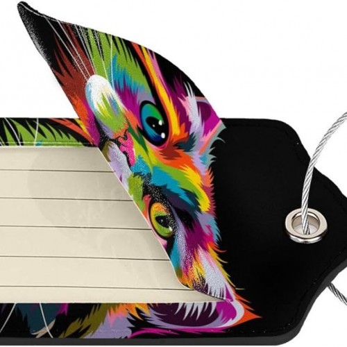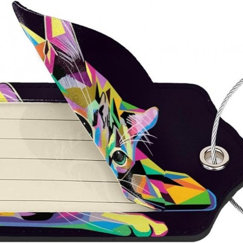 Cat Leather Luggage Tag with Stainless Steel Ring, Fun Name Id Card Cover Travel Bag Tag Set, Suitable for Travel Bag Luggage Women Men 1 PCS