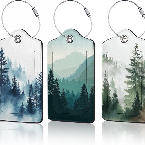 3 PCS Misty Forest Landscape Luggage Tags,Suitcase Tags Privacy Cover ID Label with Stainless Steel Loop and Address Card for Travel Bag Suitcase
