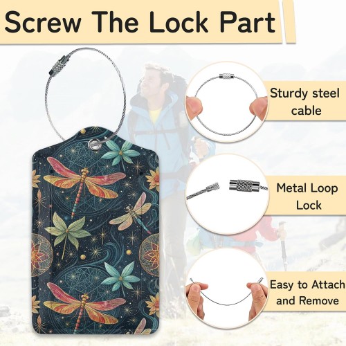 3 PCS Dragonfly Luggage Tags,Fantasy Dragonfly Suitcase Tags Privacy Cover ID Label with Stainless Steel Loop and Address Card for Travel Bag Suitcase