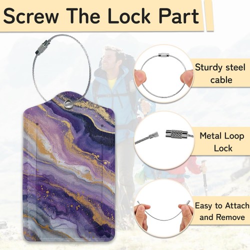 3 Pack PU Leahter Abstract Marble Liquild Luggage Tag with Stainless Steel Loop,Colorful Travel Suitcase Labels with Privacy Cover ID Label Quickly Spot for Bags