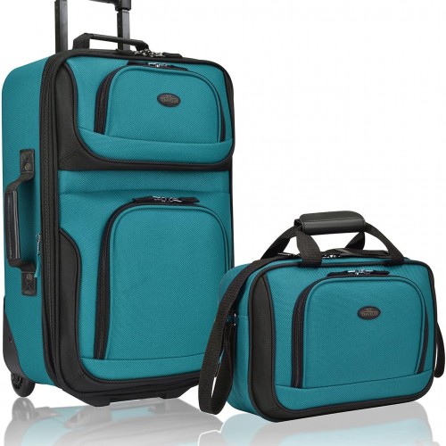 U.S. Traveler Rio Fabric Expandable Carry-on Luggage, Rolling Suitcase, Teal, 2 Wheel Set