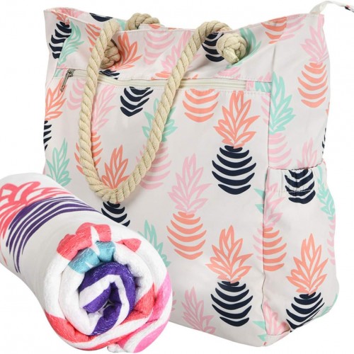 Beach Bag Spacious Shoulder Tote Travel & Gym Bag w/Multiple Pockets & Strong Zipper