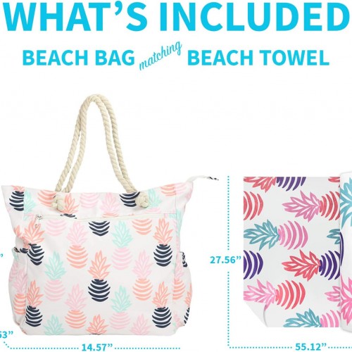 Beach Bag Spacious Shoulder Tote Travel & Gym Bag w/Multiple Pockets & Strong Zipper